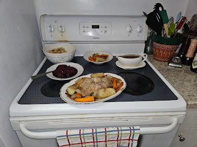 My wonderful wife made this delicious dinner: pork roast; roasted vegetables (potatoes, carrots, onions); red cabbage; mashed potatoes; and gravy.Observations and Practices of a Self-Proclaimed Bohemian (October is Italian-American Heritage Month)
